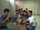 打ち上げにて。 前回に引き続き今回も出没!!「おやじバンド」 お揃いのシャツが「超かわいい!!」って人気を独り占め! さすがに前回よりは上手くなったかな。調子に乗って何曲も演奏。しかもアンコールまで用意して有った。 次回はお願いだからP.Aを何とかして下さい。 とっても素敵?なボーカルが聞き取れません。 |