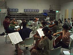 愛教大助教授・新山王さんによる合奏練習。 練習前に新山王さんが「今日は最初に準備運動としてエアロビでもしますか?」っておっしゃられるので、こりゃ面白そうだぞ、振り付けによってはかな〜り笑えるぞ〜って楽しみにしていたのですが、結局いきなり合奏へ。 以前、名フィルの杉浦先生に弦分奏を見ていただいた時にみんなで「太極拳」をやったのを思い出しました。 弦楽器って力を入れるより、抜く方が難しいんですよね。 やったこと無いけど・・・???